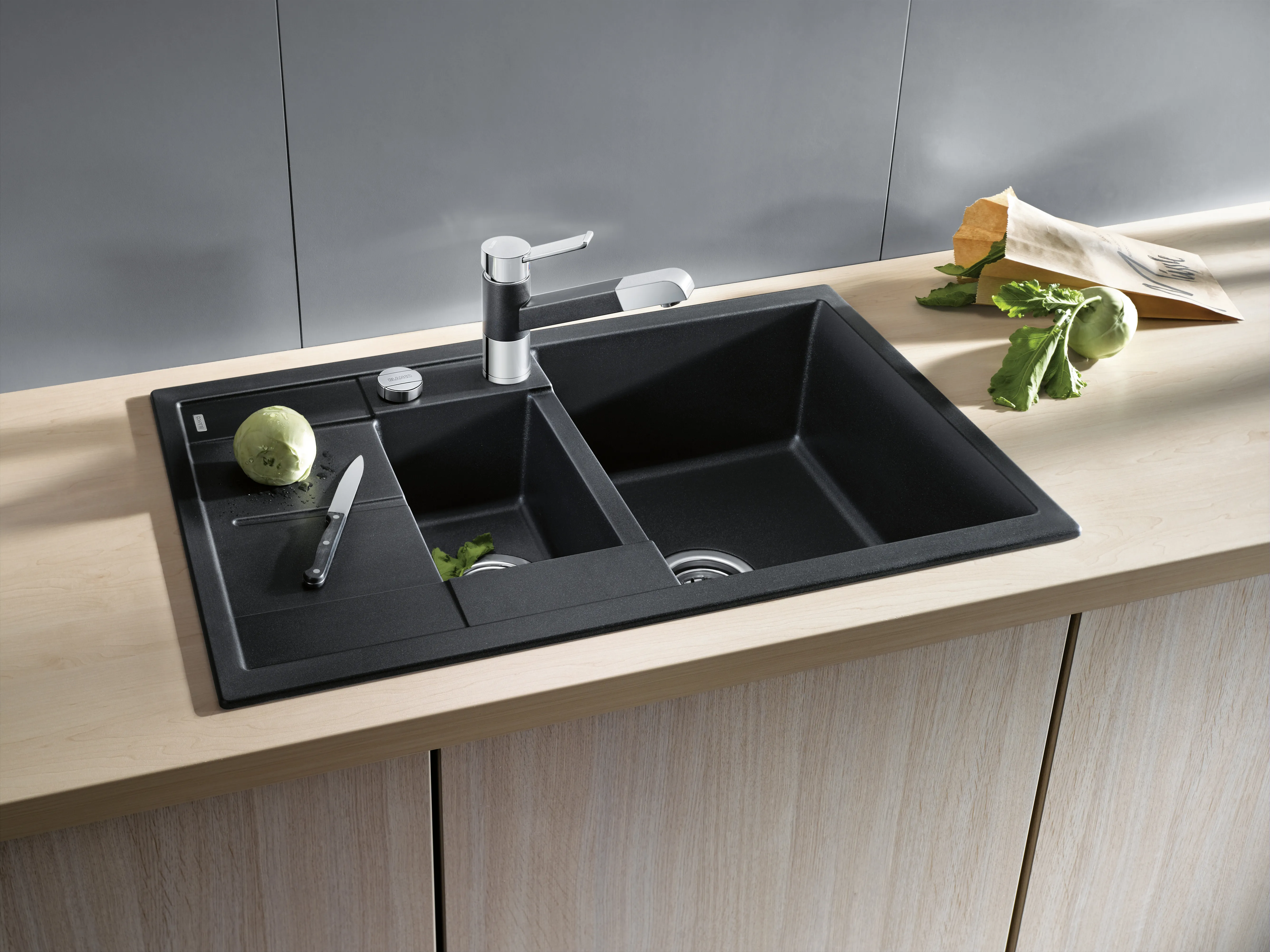 - Zusatzbecken sorgt für hohen Komfort beim Arbeiten