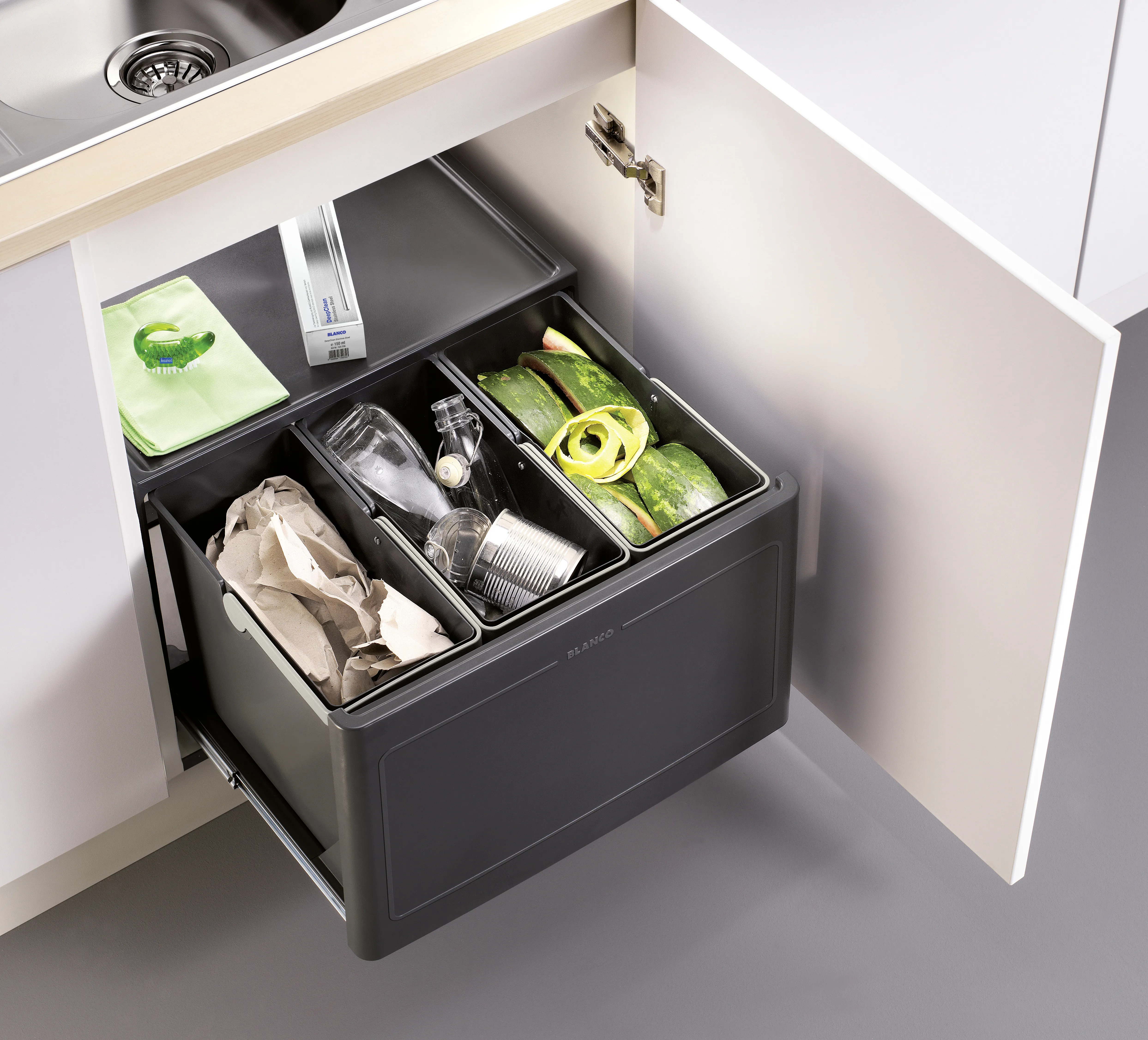 System zur Bodenmontage hinter Drehtüren, 3 x 13 l Eimer