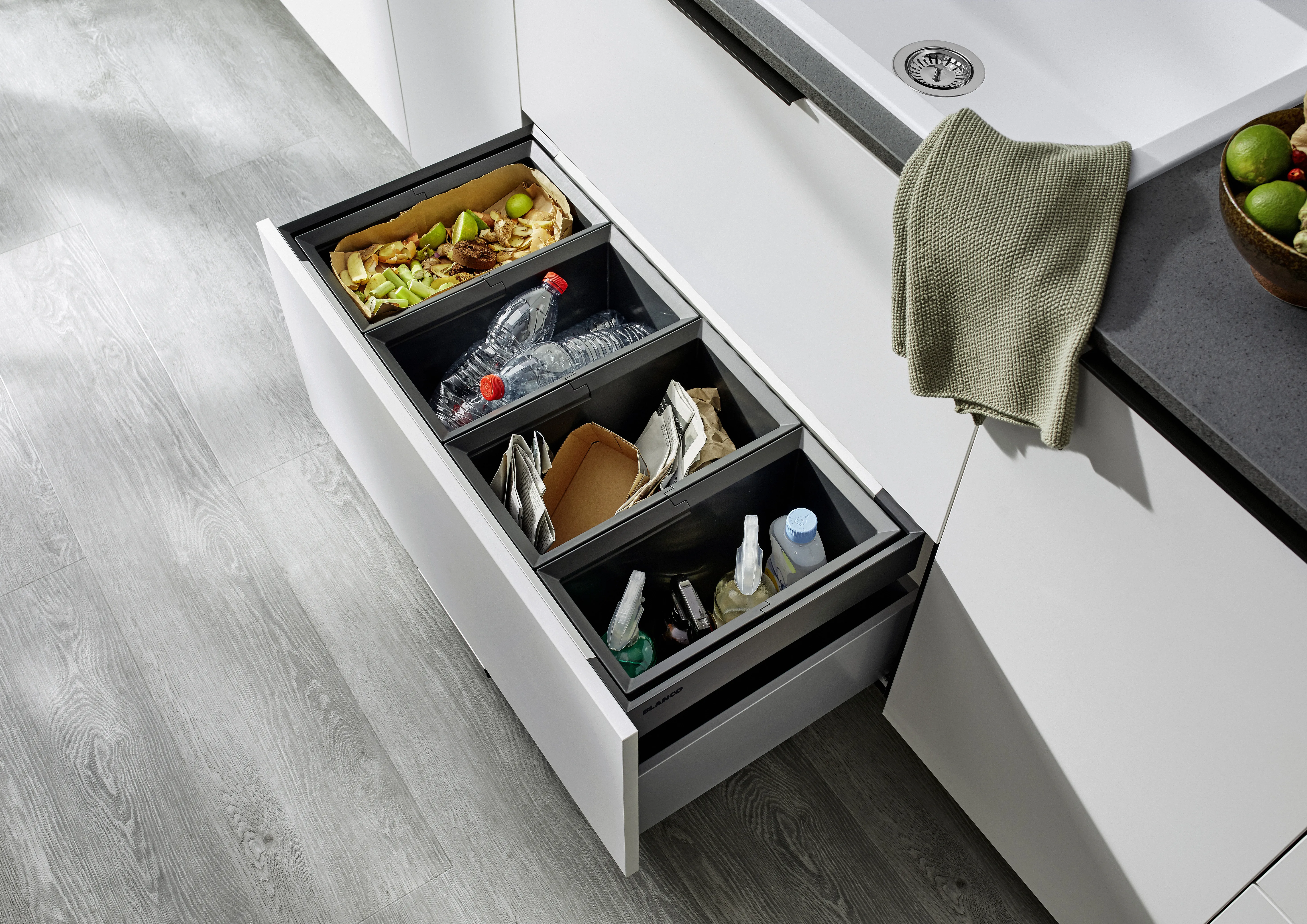 - Vielfältige Möglichkeiten zur Abfalltrennung und Aufbewahrung dank flexibler Eimerkombinationen, bei reduziertem Platzbedarf im Unterschrank