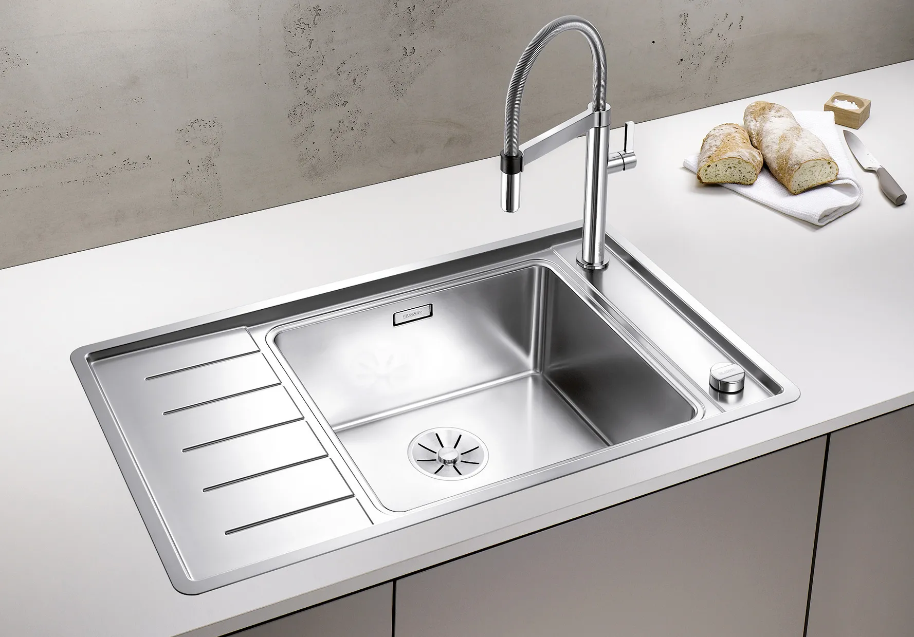 - Einhängbare Schale integriert sich bündig in das Spülendesign