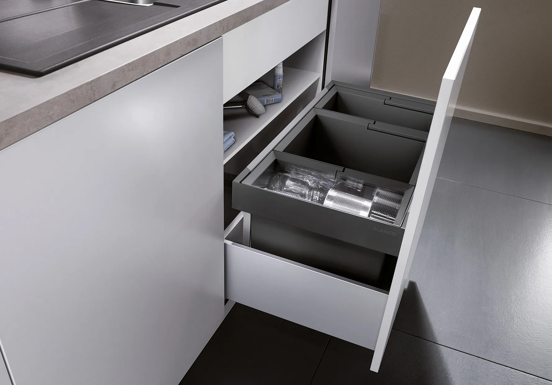 - Vielfältige Möglichkeiten zur Abfalltrennung und Aufbewahrung dank flexibler Eimerkombinationen, bei reduziertem Platzbedarf im Unterschrank