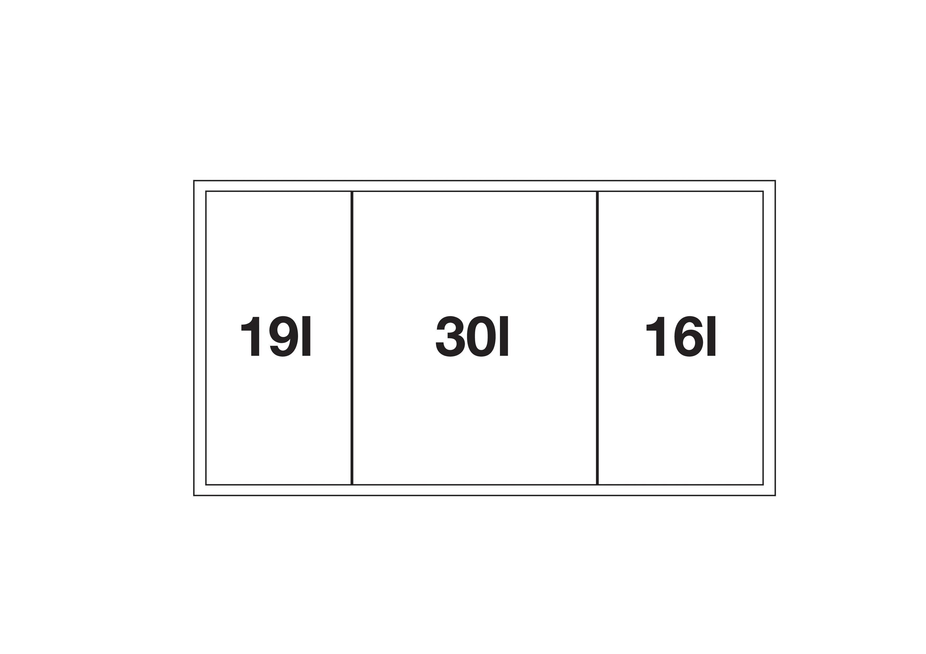 System zum Einbau in Schubladen, 1 x 30 l , 1 x 19 l und 1 x 16 l Eimer