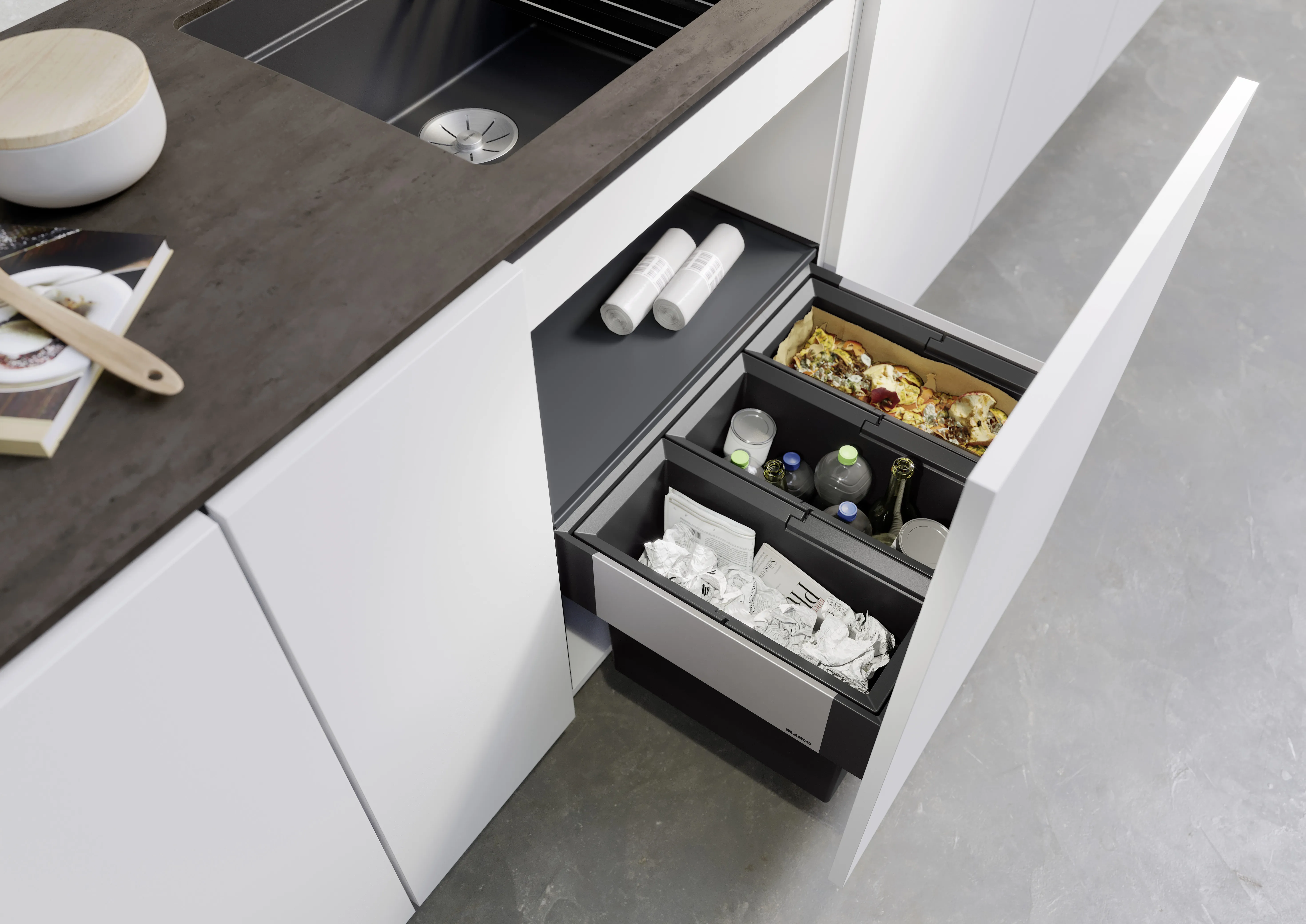 Auszugssystem zur Frontanbindung, Systemabdeckung, 3 x 15 l Eimer