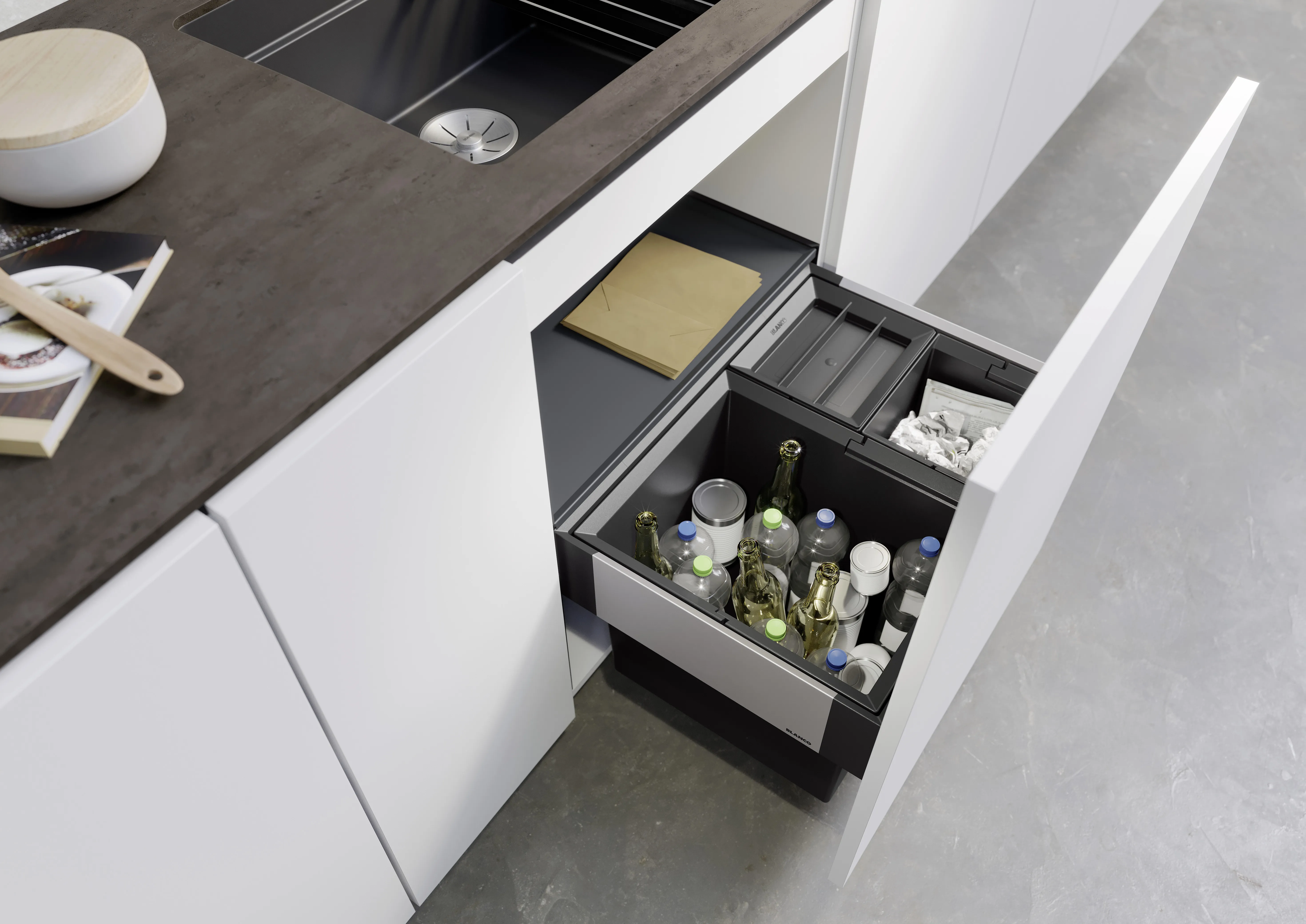 - Vielfältige und verschiedene Abfalltrennmöglichkeiten durch flexible Eimerkombinationen