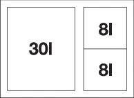 Auszugssystem zur Frontanbindung, Organisationsschublade, 1 x 30 l und 2 x 8 l Eimer, 1 x Eimerdeckel 8 l