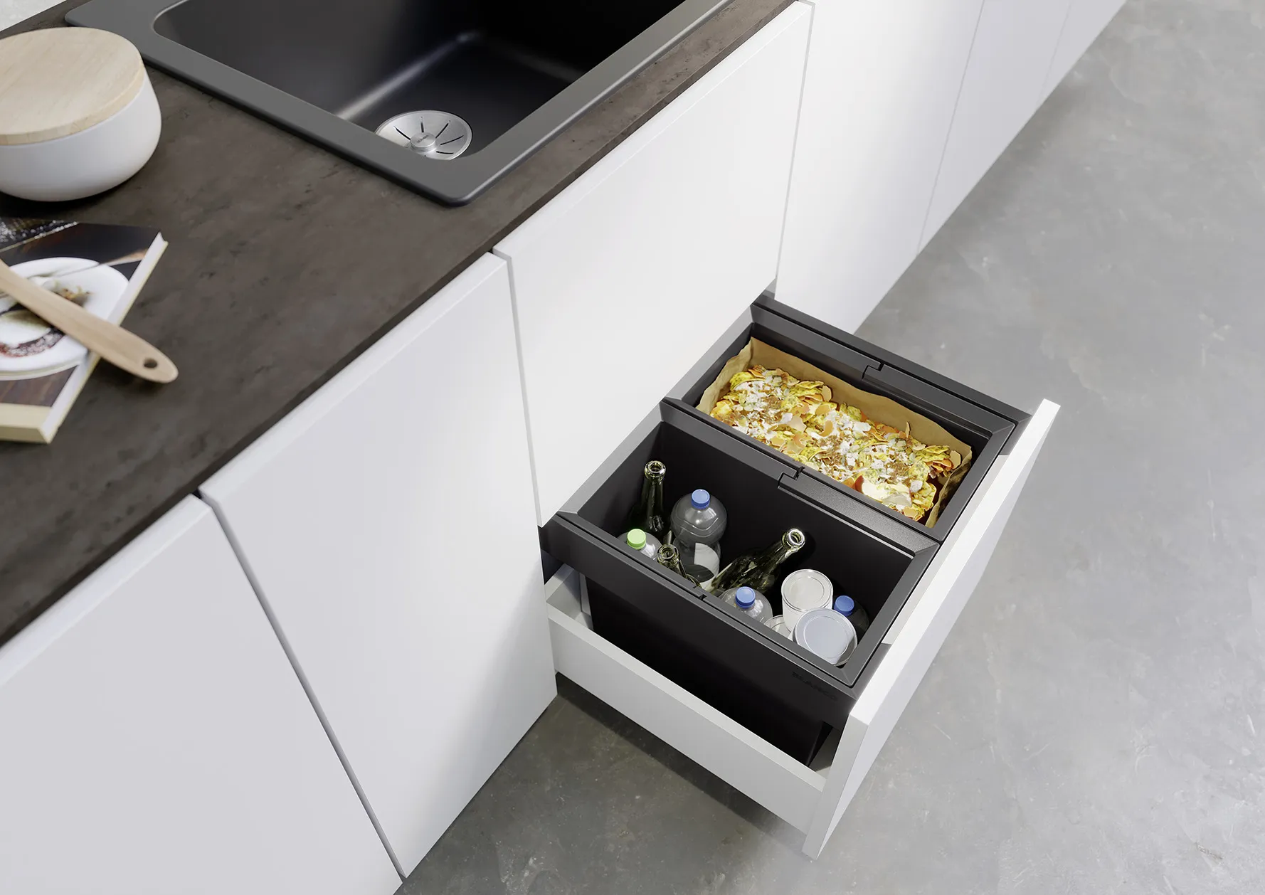 - Vielfältige Möglichkeiten zur Abfalltrennung und Aufbewahrung dank flexibler Eimerkombinationen, bei reduziertem Platzbedarf im Unterschrank