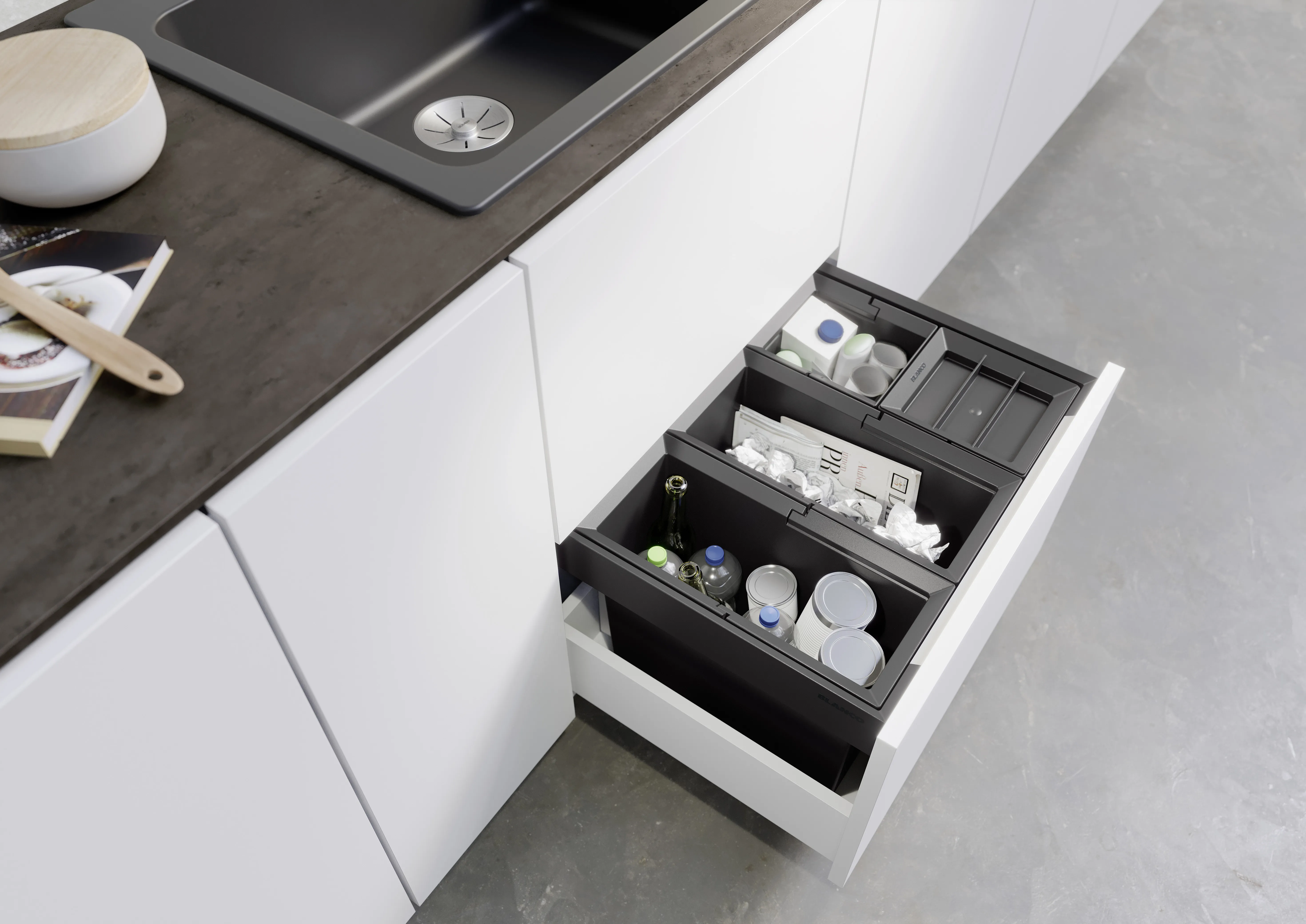 - Vielfältige Möglichkeiten zur Abfalltrennung und Aufbewahrung dank flexibler Eimerkombinationen, bei reduziertem Platzbedarf im Unterschrank