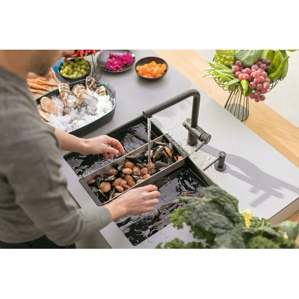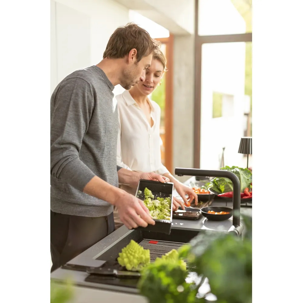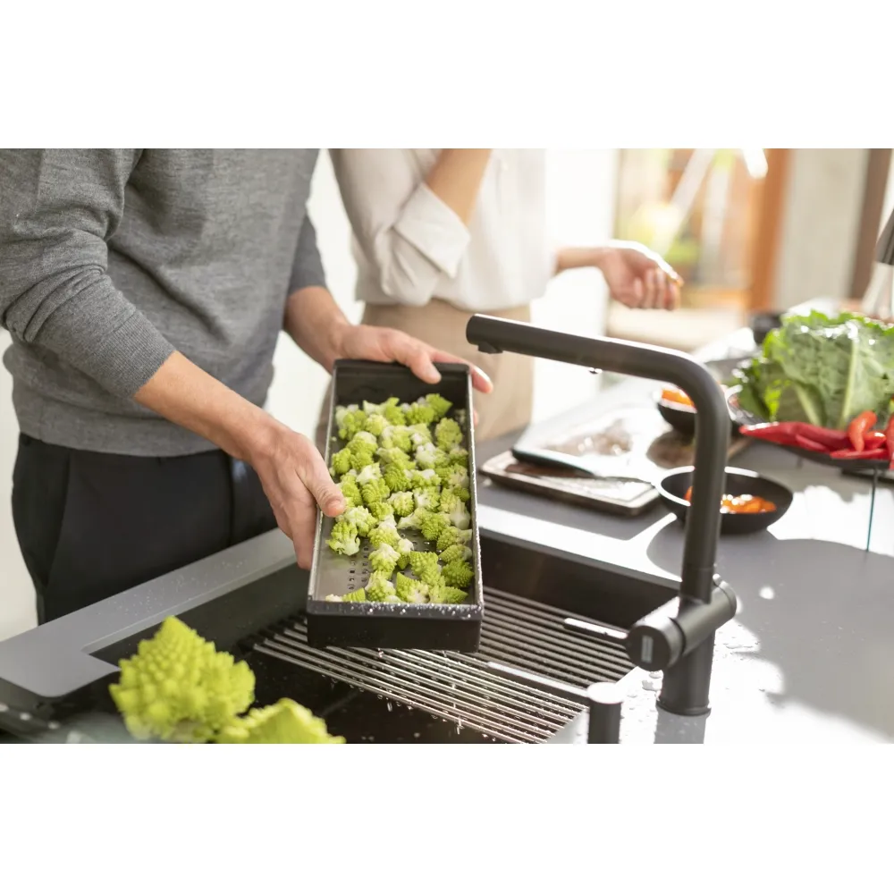 AB R12.5 156x417x54mm Ed mit Griff Abtropfbecken, Radius 12,5, 440x156x50mm, rostfreier Edelstahl, Kunststoffgriffe Innenmaß: 415x154x48mm