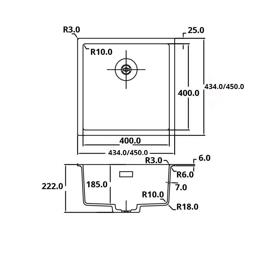 CARESSi CAGRPP40BK-ON/TU Einzelbecken 50er tiefschwarz Unterbau