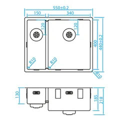 Innenmaße: 340 x 400 mm / 150 x 400 mm