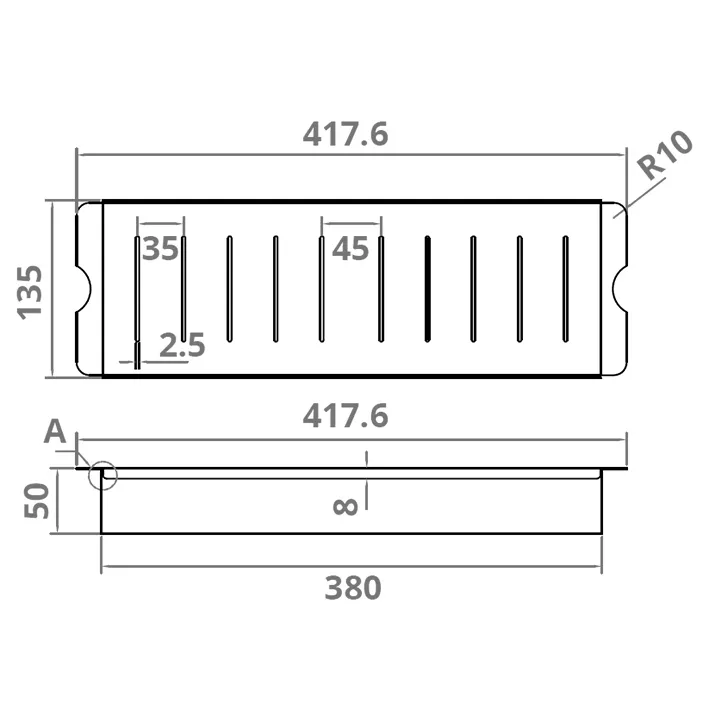 Maße = 477/380 x 135 x 50 mm