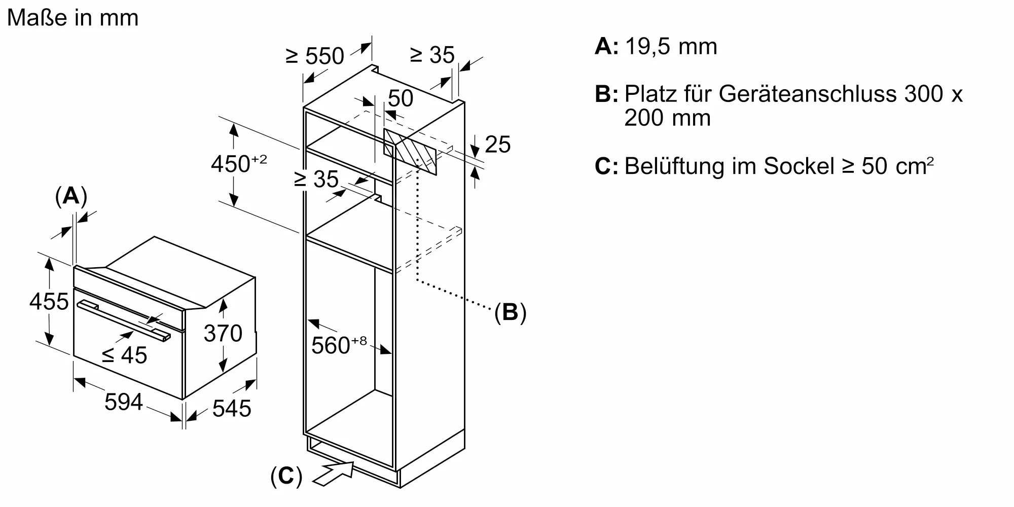 Nischenmaße (HxBxT): 450 mm x 560 mm x 550 mm