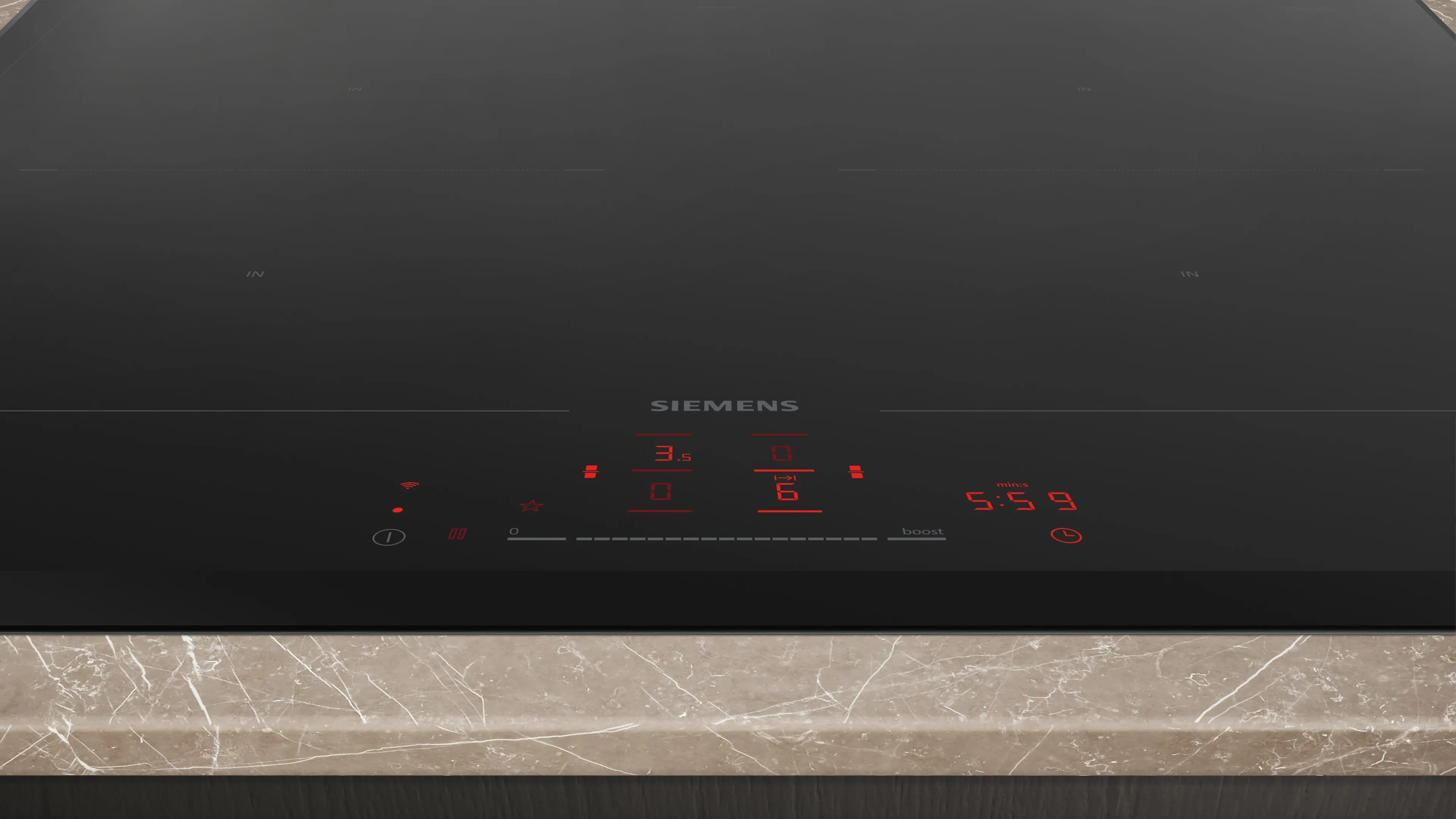 powerBoost-Funktion für alle Induktions-Kochzonen möglich: Mit 50 % mehr Leistung z. B. Wasser schneller zum Kochen bringen als auf höchster Leistungsstufe.
