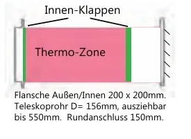 Flansche innen/außen = 200 x 200 mm