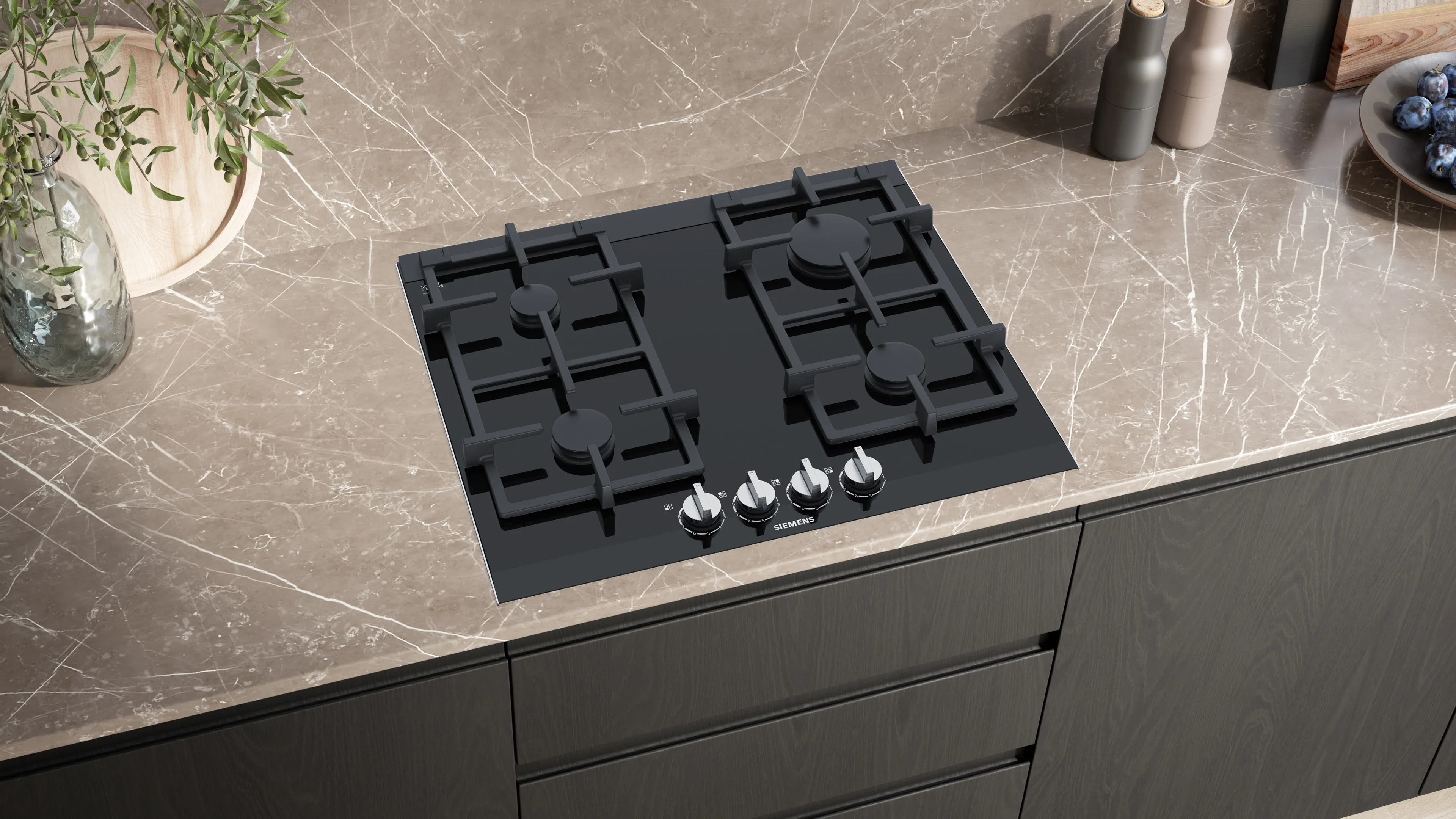 ER6A6PB70D, iQ700, Gaskochfeld, 60 cm, Glaskeramik, Schwarz