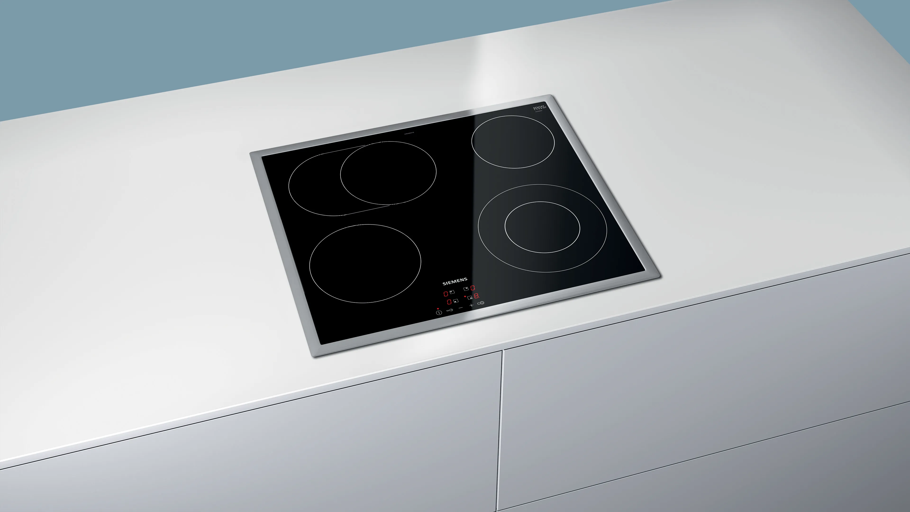 2-stufige Restwärmeanzeige je Kochzone: Zeigt an, welche Kochzonen noch heiß oder warm sind.