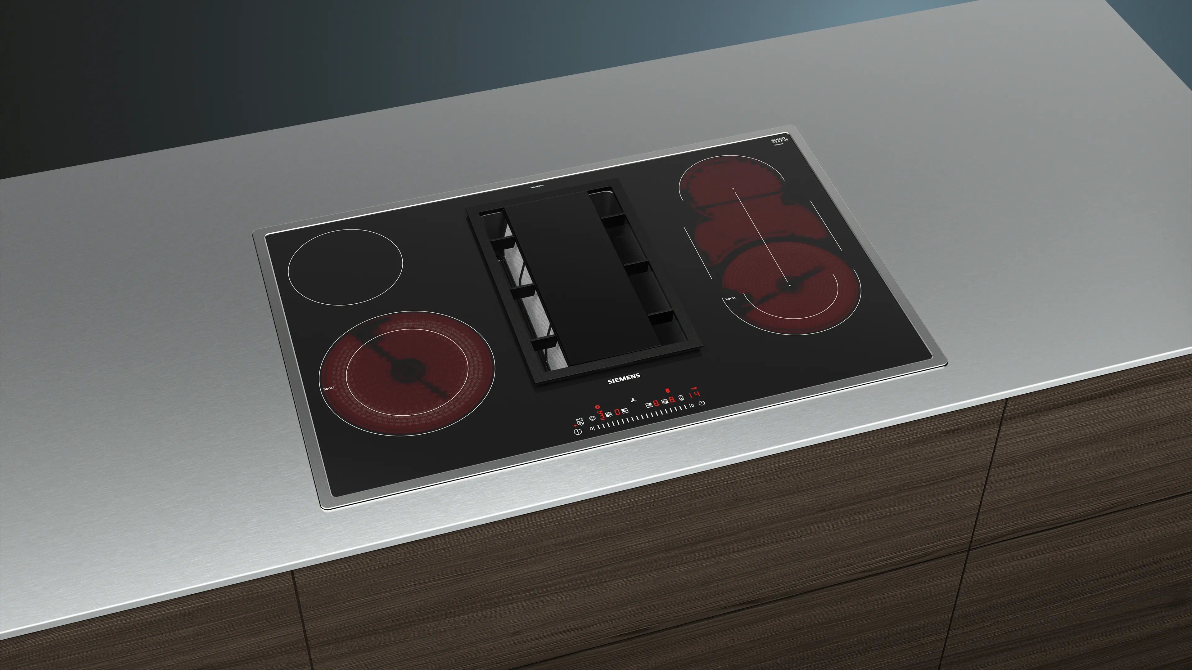 Eigenschaften " ET845FM11E, iQ500, Kochfeld mit Dunstabzug (Strahlung), 80 cm, Mit Rahmen aufliegend"