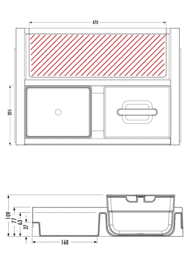 Auszug oberhalb des Mülleimers für 60 cm breite Unterschränke