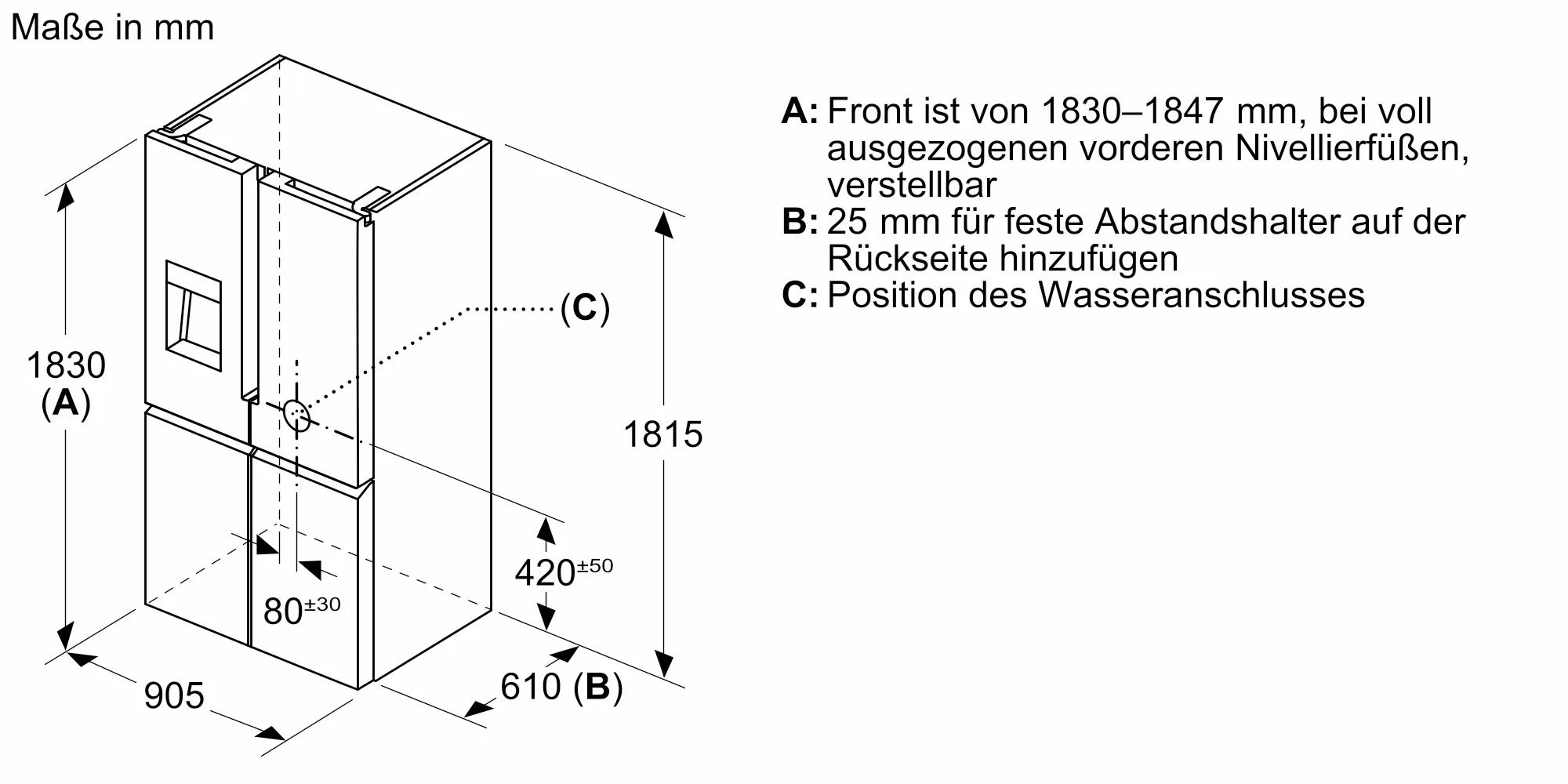 Gerätemaße ( H x B x T): 183.0 cm x 90.5 cm x 73.1 cm