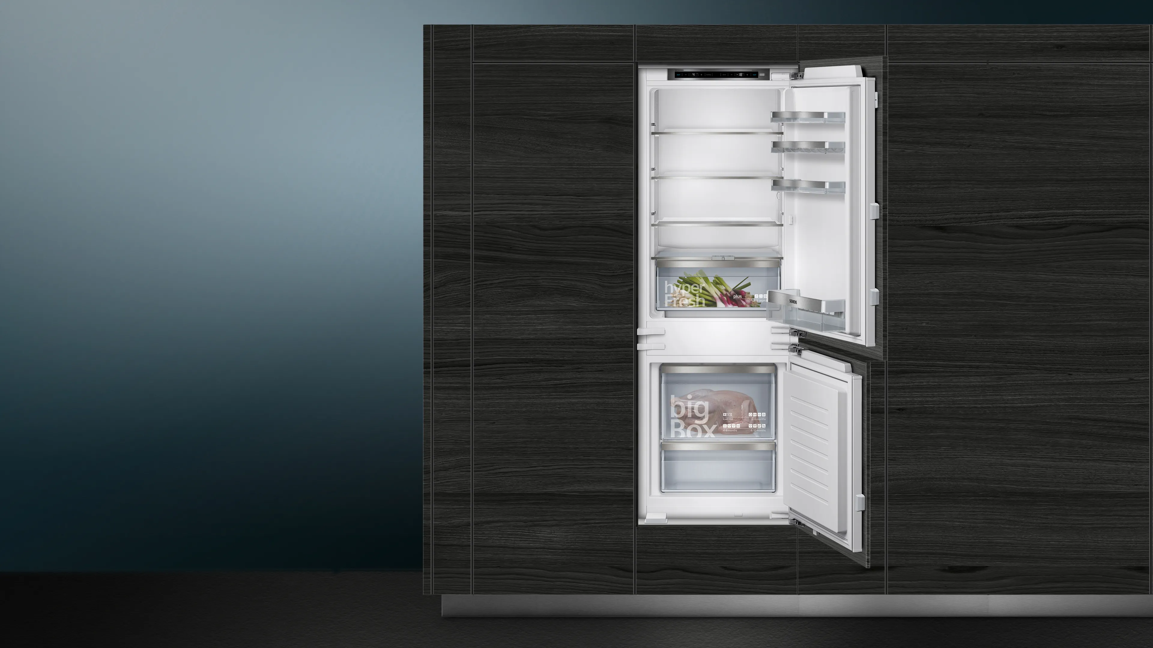 Eigenschaften " KI77SXFE0, iQ500, Einbau-Kühl-Gefrier-Kombination mit Gefrierbereich unten, 157.8 x 55.8 cm, Flachscharnier"