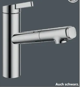 Mit ausziehbarer Umschalt-Brause durch Druck auf den Schaltknopf am Auslauf-Ende.
