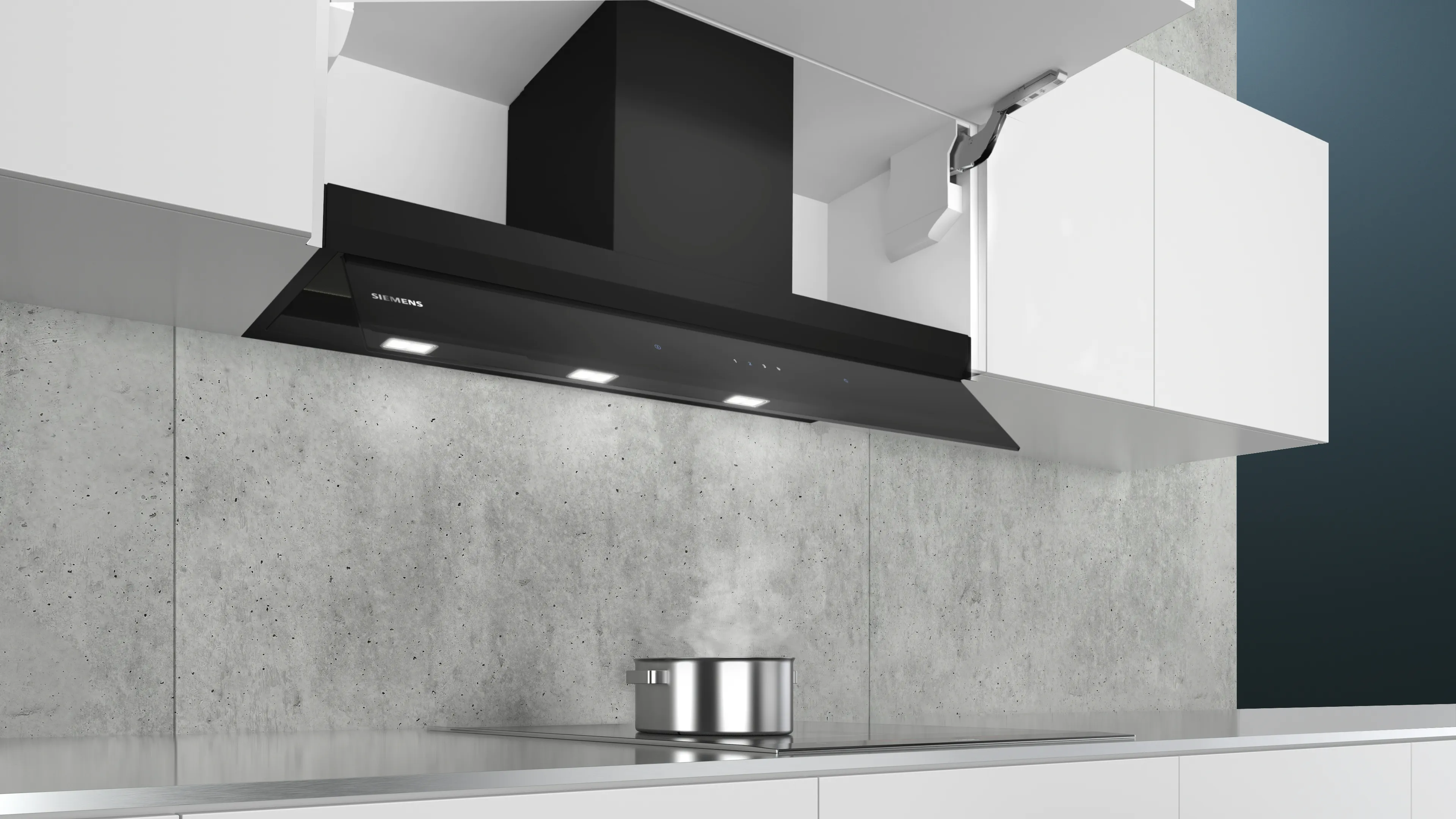 Eigenschaften " LJ97BAM60, iQ500, Integrierte Designhaube, 90 cm, Klarglas schwarz bedruckt"