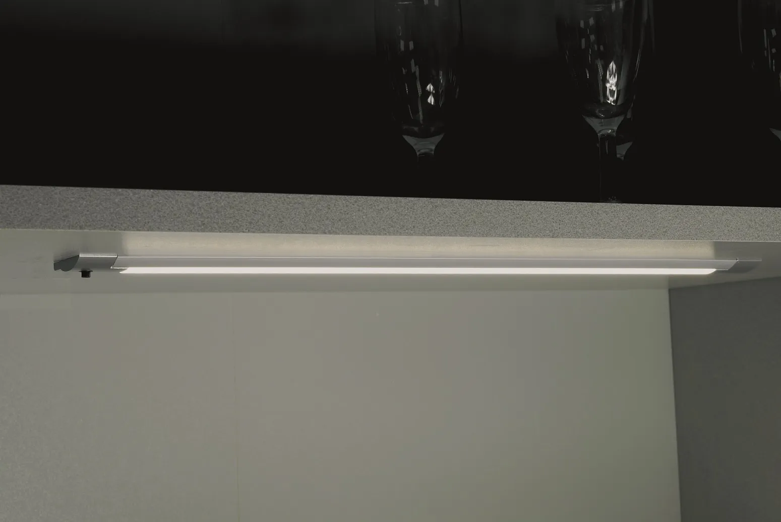 Moderne Unterbauleuchten, die durch ihre gerundete Form besonders flach wirken und eine echte Alternative zu eingefrästen Lampen darstellen.