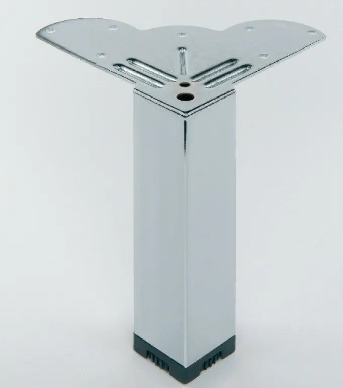 Mini - Stützfuß quadratisch in Edelstahloptik, mit nach hinten gerichtetem Befestigungsflansch.
