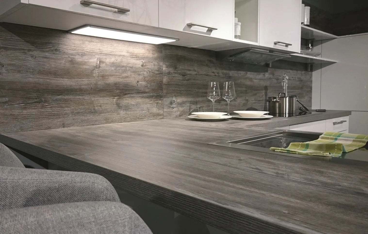 Extrem helle Grossflächenleuchte optimale Alternative zu Lichtböden. Mit nur 8 mm Höhe und einer Tiefe von 200 mm passt sie unter Oberschränke oder Borde und leuchtet die Arbeitsflächen aus. Mehrere Leuchten können an einen Converter angeschlossen werden. Die Befestigung liegt verdeckt unter dem Rahmen. Kabelausgang rechts hinten. Zuleitung 1,5 m. Converter je nach Anzahl der Leuchten separat bestellen. Schaltung über System oder geschaltete Steckdose.
