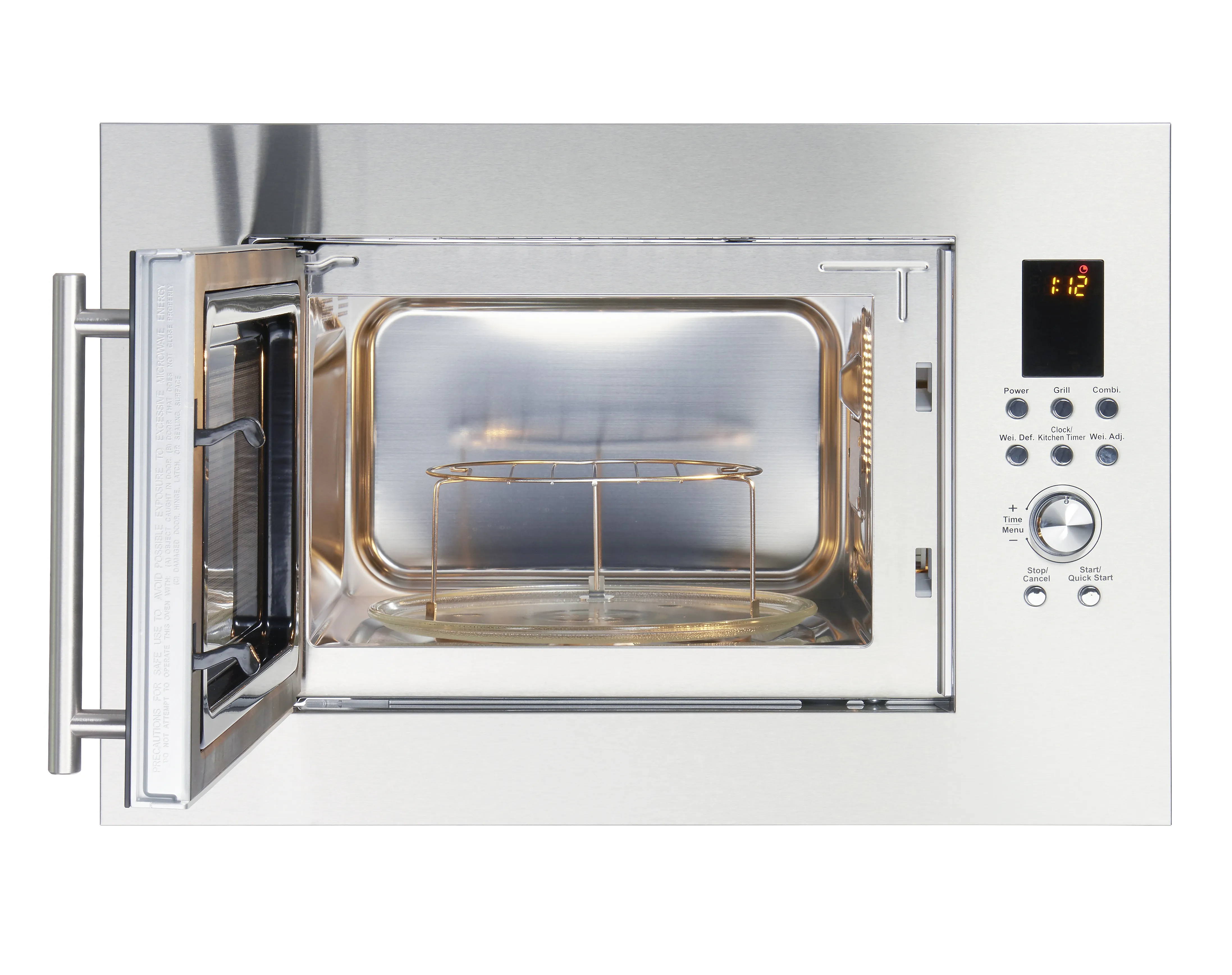 Gehäusefront Edelstahl gebürstet Material Garraum Edelstahl Volumen Garraum: 23 Liter Maximale Leistung Mikrowelle: 900 Watt Maximale Leistung Grill: 1000 Watt Anzahl Leistungsstufen Mikrowelle :6 Anzahl Leistungsstufen Grill :1 Anzahl Leistungsstufen kombiniert :2 automatische Garprogramme: 8