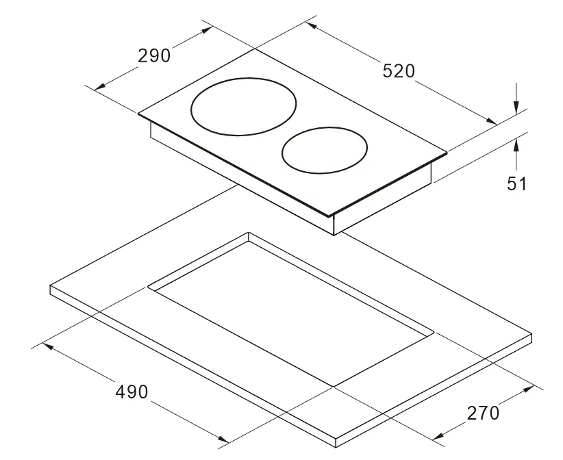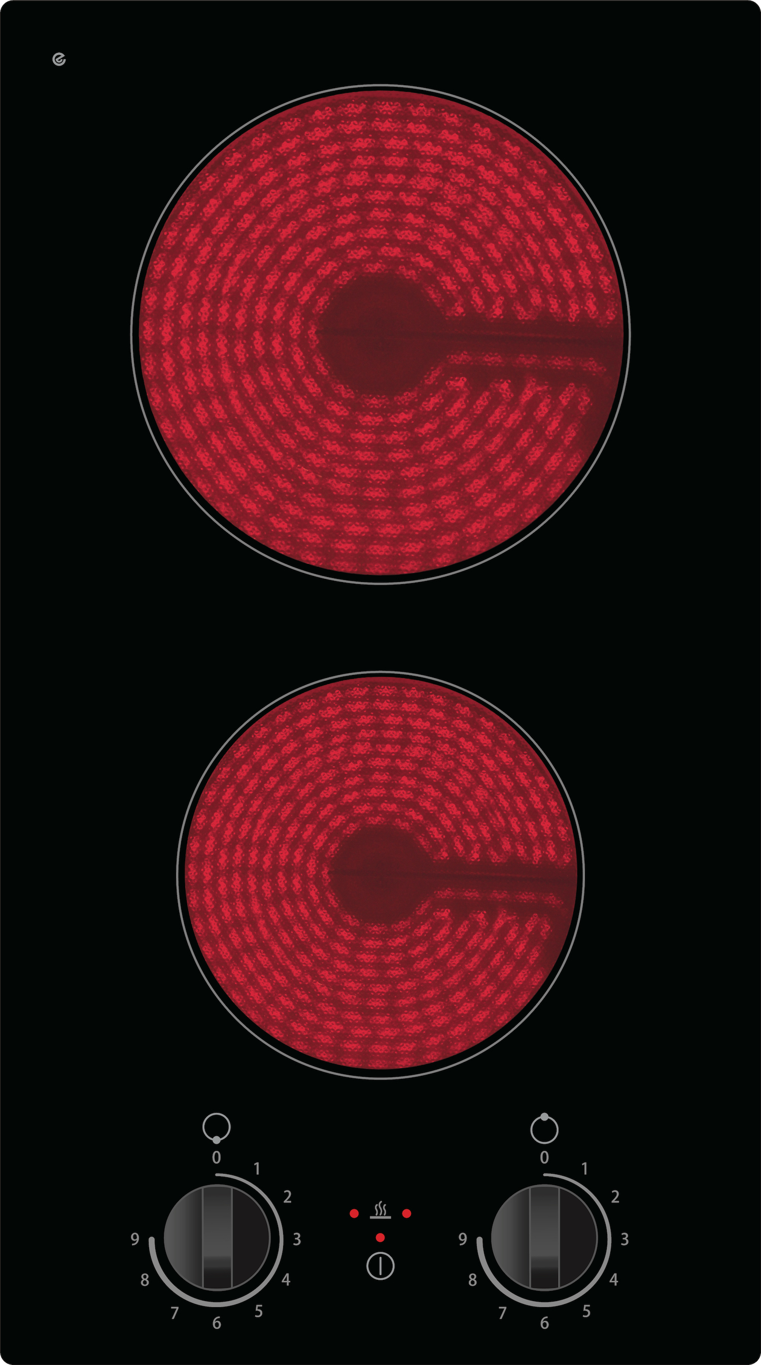 Bedienpanel: Knebel Material Kochfeld: Glaskeramik Anzahl Kochfelder: 2 Durchmesser Kochfeld vorne :15,50 cm Durchmesser Kochfeld hinten :19,00 cm Leistung kleines Kochfeld: 1200 Watt Leistung großes Kochfeld :1700 Watt Maximale Leistung: 2900 Watt Spannung: 220-240 Volt Frequenz :50/60 Hz