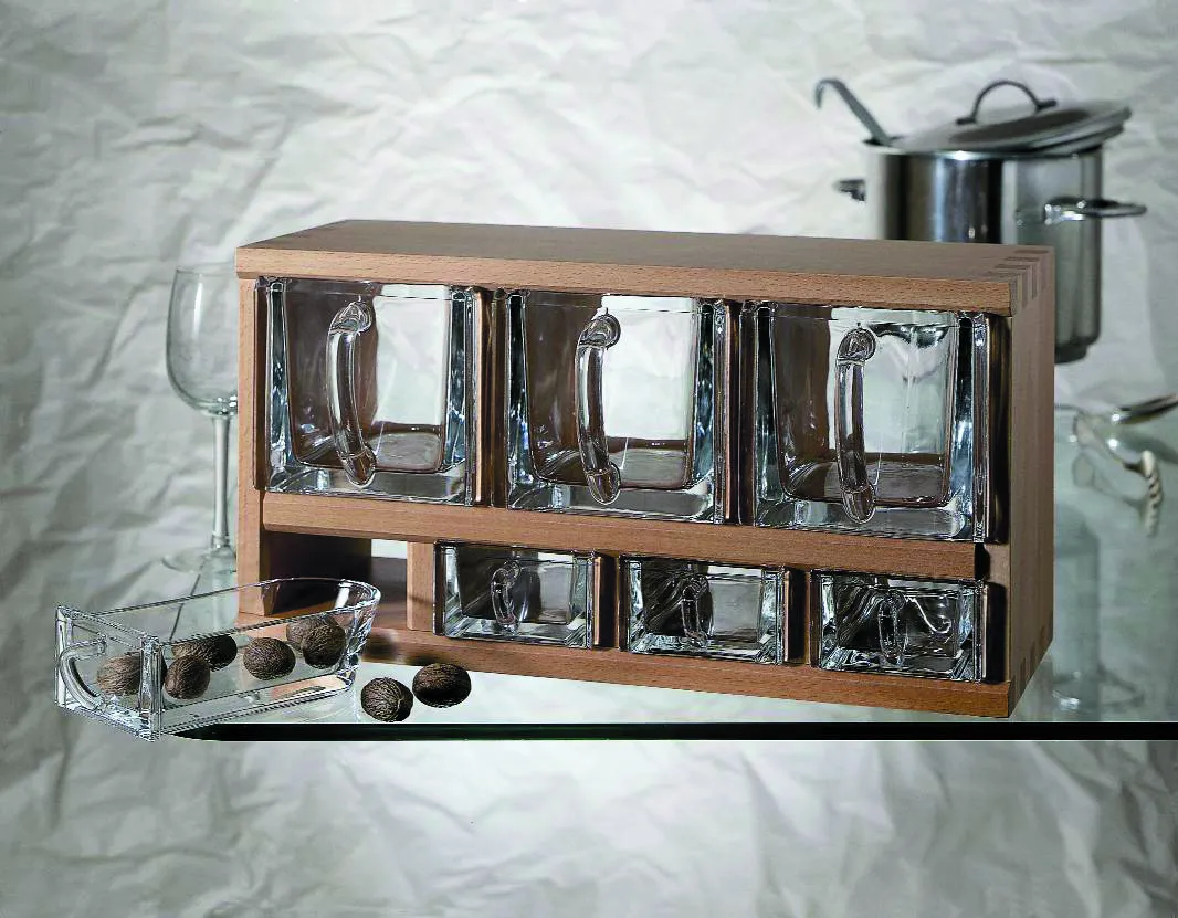 Schüttenkasten in hochwertiger Ausstattung aus Rotbuche mit verdeckter Wandbefestigung.