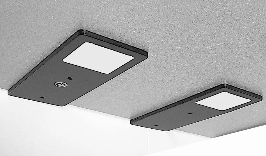 Die nur 4 mm hohe Leuchte bietet mit ihrer 3,5 Watt LED hohe Lichtleistung und breiten Streuwinkel. Die sehr wertige Verarbeitung mit einem zentral positionierten, gut zugänglichen und großen Schalter auf der Masterleuchte (steuert das gesamte Set) für optimierte Bedienung, unterstreicht die besondere Qualität der Verarbeitung.