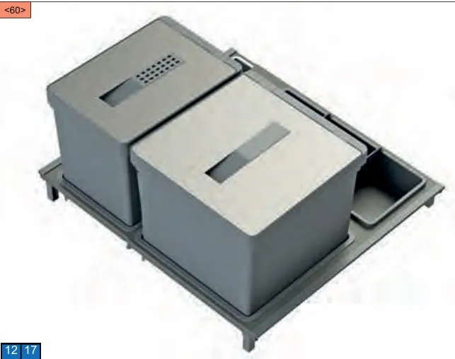 Ausführung: T2 für 60er Auszug, 2-fach Trennung, 12 + 17 Liter