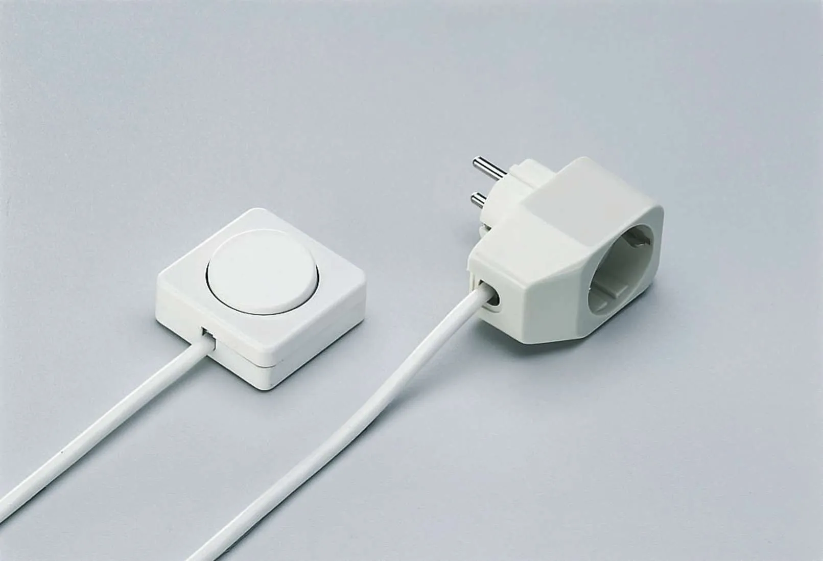 Empfohlen für LED Leuchten. Der Kombi-Stecker dieses Systems verfügt gleichzeitig über eine Steckdose, an der Verteiler oder Verbraucher bis 8 Ampere angeschlossen werden können. Ein 3 m langes Kabel (2 x 0,75 mm²) führt zum Schalter, welcher beliebig untergebaut wird und den Stromfluss zum Kombistecker (für Schutzkontakt-Stecker) steuert.